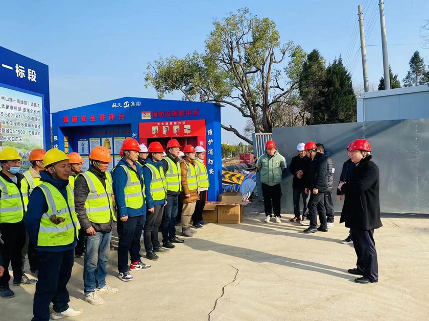 吳鑒董事長踏勘了項(xiàng)目現(xiàn)場,向堅(jiān)守現(xiàn)場的工作人員致以誠摯的新春祝福,感謝他們的無私付出,并親手送上慰問品。在聽取了關(guān)于春節(jié)期間施工安排、工序組織及管線遷改等近期重點(diǎn)工作的匯報后,他強(qiáng)調(diào):臨半路作為亞運(yùn)保障、改善區(qū)域交通出行條件的重要項(xiàng)目,務(wù)必在確保安全施工的基礎(chǔ)上,穩(wěn)步抓好施工進(jìn)度和施工質(zhì)量。要繼續(xù)加強(qiáng)與沿線單位的協(xié)調(diào)力度,進(jìn)一步優(yōu)化施工組織方案,同時做好現(xiàn)場安全文明施工管理。